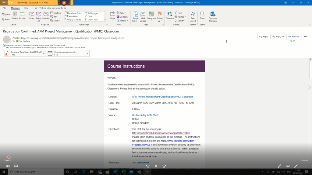 If it’s not possible to download then all then we can use the web browser version. Let’s go back to this email. Cut and paste the URL into Chrome so. I usually Microsoft Edge but have